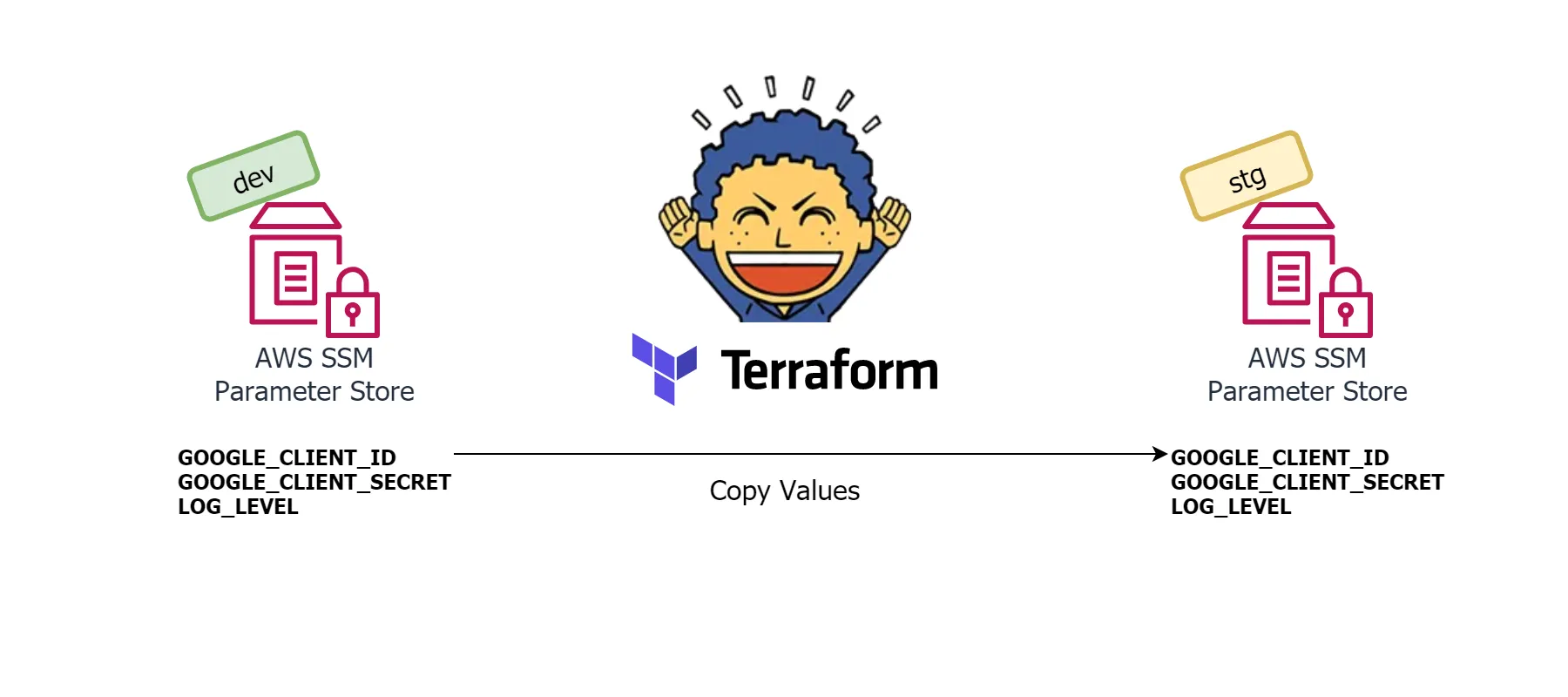 Using Infrastructure as Code mitigates the risk of having misaligned live environments. And as mentioned in the title, I’ll implement IaC for managing SSM Parameters with Terraform.